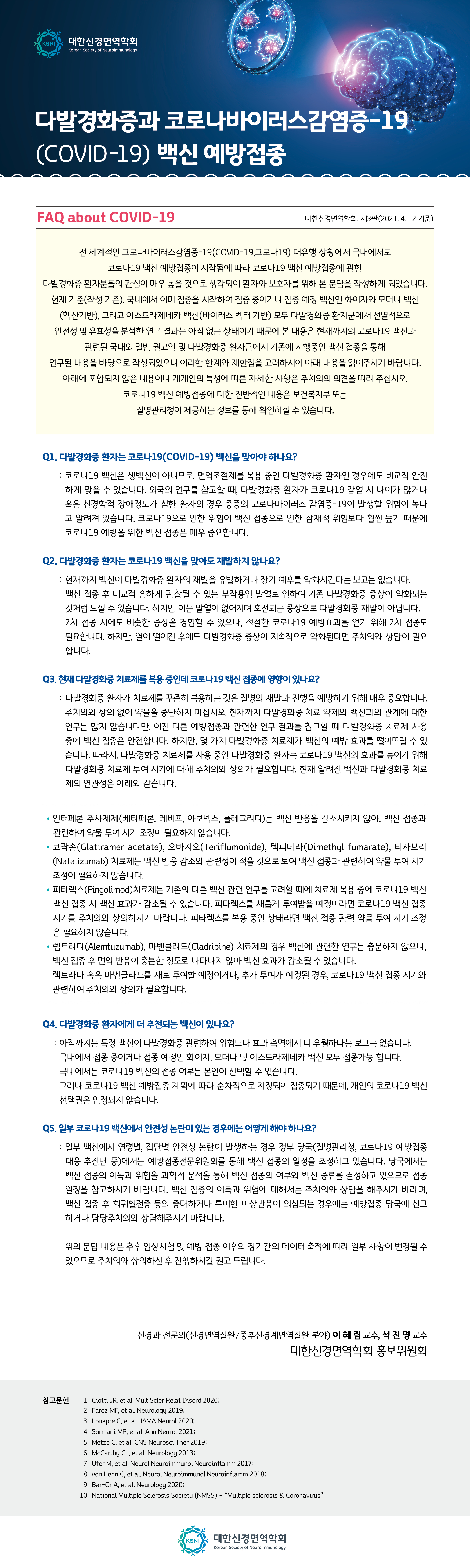 다발경화증과 코로나바이러스감염증-19(COVID-19) 백산 예방접종
